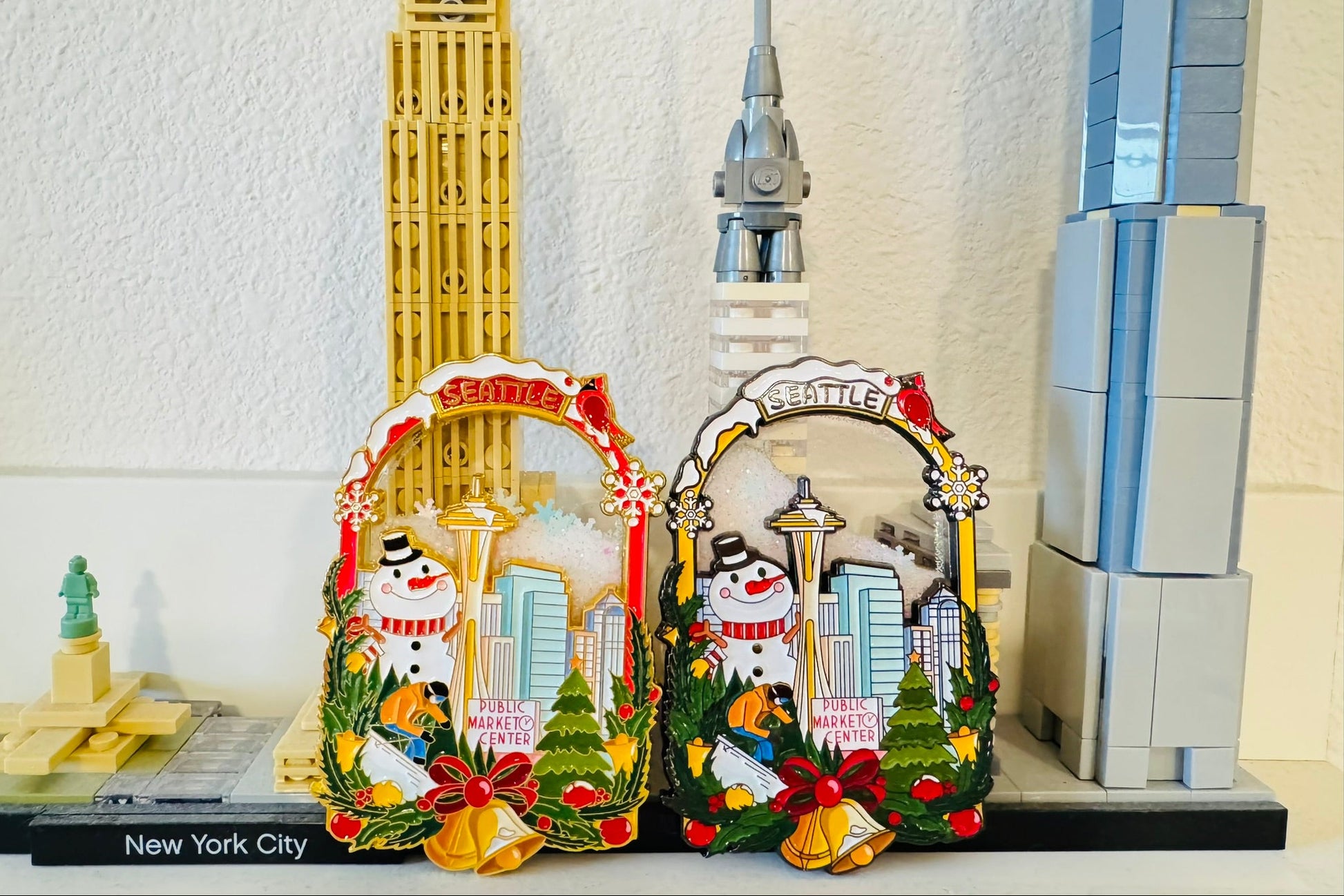 As a designer, I wanted this Seattle Winter Magnet to feel like a tiny holiday celebration you can hold in your hand. I captured the city’s festive spirit through the Space Needle, the Public Market Center sign, and downtown’s glowing skyline—iconic symbols wrapped in winter magic. A cheerful snowman and decorated evergreens bring playfulness and warmth, while golden bells and holly accents add seasonal charm. My favorite element is the snow-globe effect: shimmering “snow” that drifts with every movement, recreating those rare, magical snowy moments in Seattle. Designed here and crafted with care, this magnet is a joyful tribute to Seattle’s holiday season.